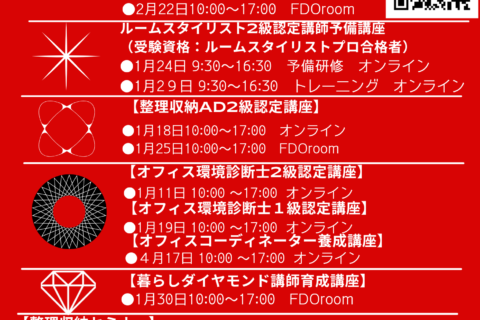FUTARINO DESIGN OFFICEでは、整理収納アドバイザー2級、ルームスタイリスト、オフィス環境診断士などハウスキーピング協会の認定講座を受講できます。